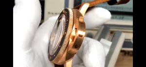 對于腕表圈口來說,此次腕表則是為棕色的復古圈口,與沛納海382不同的就是,此次968則是多了一種內斂,當然此次腕表的設計,也是將棕色微噴砂啞光面陶瓷圈和緞面拉絲的青銅表殼結合在一起,同時對于圈口方面的刻度也是很為清晰,當然圈口也是可以單向轉動,這里注意作為一個計時圈口,不要順時針暴力轉動,避免圈口受損!對于鏡面方面來說,此次腕表則是搭配為經典的藍寶石鏡面,鏡面的通透性方面非常強,當然側面去看鏡面,也是有一種魚眼感,同時鏡面在后期使用過程中,也不會容易出現刮花的尷尬局面!