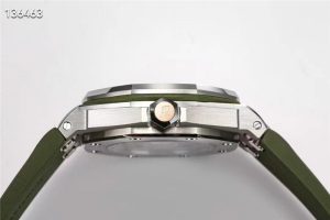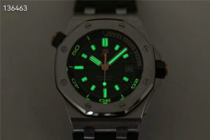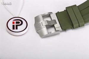 對于此次腕表的表帶很為舒適,橡膠表帶很為飽滿,表殼鏈接表帶的頭粒部分,也是最難部分,不惜破壞原裝頭粒窺探內部結構來復刻出同等結構,達到一鍵拆出,一頂安裝而不拖泥帶水的效果。表扣也是愛彼第一個推出的快拆表扣,讓你更換表帶和更換長扣更便捷,滿足你不同的需求。IP廠也是多次開模達到表扣拆出裝入不緊不松的原裝效果。最人性化的活動頭粒緩沖,確保吻合正品,這也是IP廠花了很多心思達成,在快拆的基礎上做到活動緩沖效果,對于表帶細節方面的打磨處理很為完美!