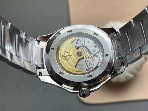 對背面來說,此次依舊為旋入設計的鏡面底蓋,同時透過鏡面也是可以直觀機芯的運轉方式,當然此次腕表對于機芯方面的要求來說,則是很具魅力,前文也是有分享,腕表機芯已經升級到了330機芯,當然對于這顆機芯在穩定性方面很具強大,這里注意一下,并非說復刻表就沒有破綻,由于正品采用了無卡度游絲擺輪,而仿品還是采用了普通的有卡度游絲擺輪,所以外觀就有了區別,正品擺輪是砝碼擺輪,仿制品擺輪是光滑的原型,當然所有復刻腕表都是會有一定的破綻點,只能說復刻去極致的還原原版,畢竟價位不到原版的零頭!