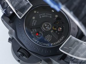 外觀方面,沛納海438vs廠是真正購入了幾塊正品,進行了拆解開模,尺寸方面完全對版正品,44mm的表徑,厚度方面因為一體機芯實現和正品基本一致,外觀方面大家不用擔心會出現一眼假,或者對比正品有不同的地方。表殼充滿磨砂質感,其打磨工藝的用心程度足以媲美原裝正品的細致;黑色的部分全部是陶瓷材質,抗劃痕、耐磨擦能力超強,觸感細膩,能防輕度劃痕,并且不會褪色,就算磨成粉粒都是黑色的,可見VS廠在用料上的不惜成本。表殼干凈利落,沒有任何設計圖案,以清一色的純黑色調彰顯出沛納海的神秘;中殼和表耳的連接做到了完完全全的一體化,不見其他雜質和搭配。正品一致的圈口也是可拆卸,這是市場上唯一一家可拆卸圈口。拆開后可以看到有一條黑色的防水圈,是起到防水的關鍵一個零件。圈口色調也是黑得純粹,緊實無縫隙地和鏡面貼合在一起,無論是正側兩面觀摩過去,圓潤的手感簡直可以和原裝正品一較高下。