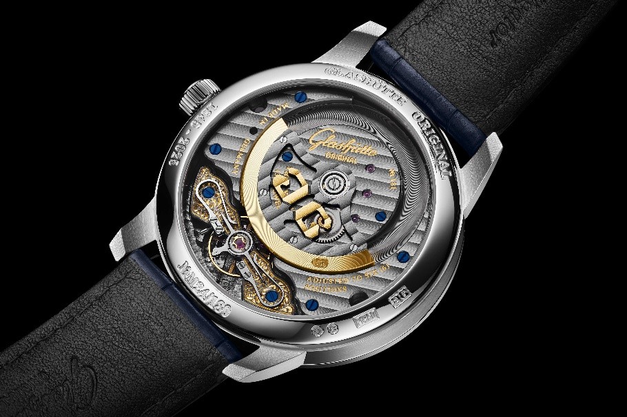 該紀念款搭載格拉蘇蒂原創最新一代自制Calibre 92型自動上鏈機芯,透過透明藍寶石水晶玻璃表背,電鍍灰色四分之三夾板上的格拉蘇蒂柱狀紋、細膩邊緣倒角及其他傳統裝飾工藝一目了然。更值得稱道的是,每一枚限量版時計,均由品牌自有工坊的制表大師全程手工完成組裝、打磨與調校,讓每一處細節都承載著純粹的德式匠心。