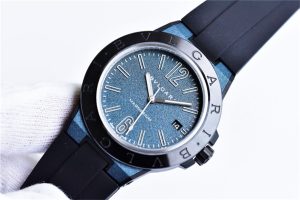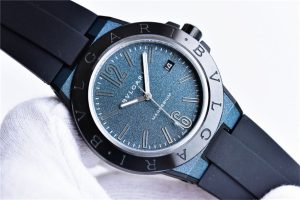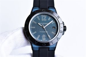GF工廠詳細還原了正品表盤上那許多創意!GF廠寶格麗MAGNESIUM系列藍色字面復制手表包含沙紋理表盤簡單明亮,6點,12點方向標志也顯得更莊重,完美的現代城市風格的簡單美。規模份額掌握準確,時間標準拉絲拋光風格獨特,工藝精細,制作精美。精細和剛性PVD陶瓷表冠,表冠觸感細致卻不滑手,釋放出一些溫和耀眼的瓷器光澤。
