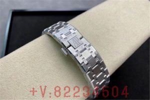 鋼帶扣里的AP字印LOGO能稍微活動一下,品味原裝的細節,才能體現精髓。折疊表帶中的折疊扣APLOGO這個地方ZF按表扣時可左右移動,JF這里是固定的,顯然是固定的ZF更正確的版本AP兩個字母的雕刻沒有100%的原版細致,留下遺憾。