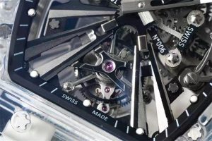 KV廠理查德12-01真陀飛輪首先在材質方面來說,腕表則是采用為碳纖維材質,當然對于碳纖維材質的運用也是比較到位,對于腕表界材質方面也是比較多,理查德用的較多的材質,則是碳纖維,陶瓷等,當然對于碳纖維來說,則就可以減輕腕表的整體重量,畢竟對于腕表的尺寸方面還是有點厚實,同時碳纖維給人帶來的也是奢華的魅力感,與此同時碳纖維的紋理感也是很為舒適,這里注意在后期佩戴過程中,也是得愛惜避免不必要的磕碰,畢竟理查德的紋理性很強!