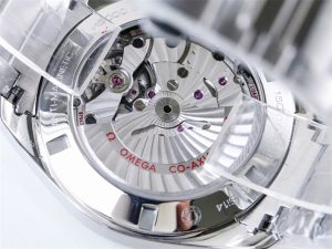 側面,表殼厚度適中,棱角分明,表圈切面細膩,打磨精細。表殼上的金屬拉絲設計展現出強烈的金屬光澤,男士硬朗的風格得到了很好的體現,還能掩蓋佩戴過程中產生的劃痕。采用全新的錐形設計,更方便佩戴者調整操作。兩種制造工藝用于頭部。頭部正面底部為磨砂配色,歐米茄標志位置采用拋光處理,同一頭部側面也采用拋光設計,整體工藝保持在較高水平!自主機芯8500機芯同步了原機芯的減震位,還對擺陀進行了鍍黑設計,使手表在細節上最大限度地還原原版!在功能方面,也與原版一致,做到微小功能不是假美,可以單獨調整時針,通過時針調整,可以調整日歷,這也是VS廠海馬系列150M手表風格最大的亮點之一,對于這一點也可以與其他復印版完全不同!表帶的工藝處理非常詳細。精密表鏈的邊緣和內緣采用了兩種不同的拉絲和拋光處理方法,這無疑提高了制表師零件處理的過程和難度。三排金屬鏈節靈活舒適。搭配相同材質的蝴蝶表扣,歐米茄經典代表符號裝飾在表扣上。