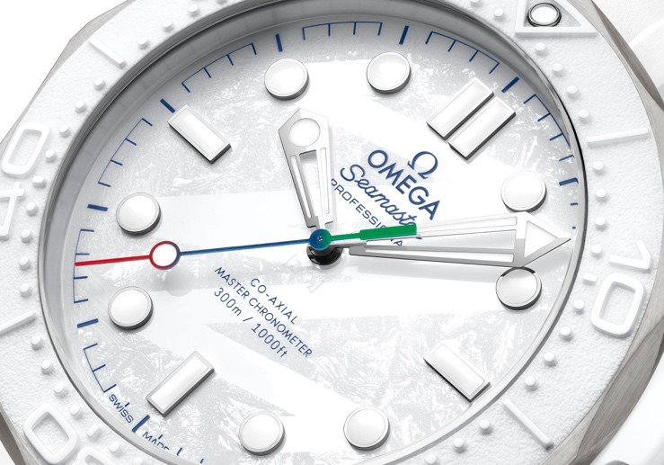 為精準詮釋冬日冰雪的純粹與靈動,歐米茄匠心甄選白色陶瓷與5級鈦金屬兩大優質材質打造腕表主體,既賦予腕表晶瑩光滑的視覺質感,又兼具輕盈便攜與堅固耐用的實用特性,完美適配冬季運動的場景需求。腕表表面采用多道精細化打磨工藝,形成豐富的視覺對比:表殼經拋光與拉絲雙重處理,光澤細膩且層次分明;排氦氣閥門與表冠采用噴砂工藝,觸感細膩柔和;白色陶瓷表圈則通過激光燒蝕浮雕工藝鐫刻潛水刻度,細節之處盡顯制表工藝的精湛。